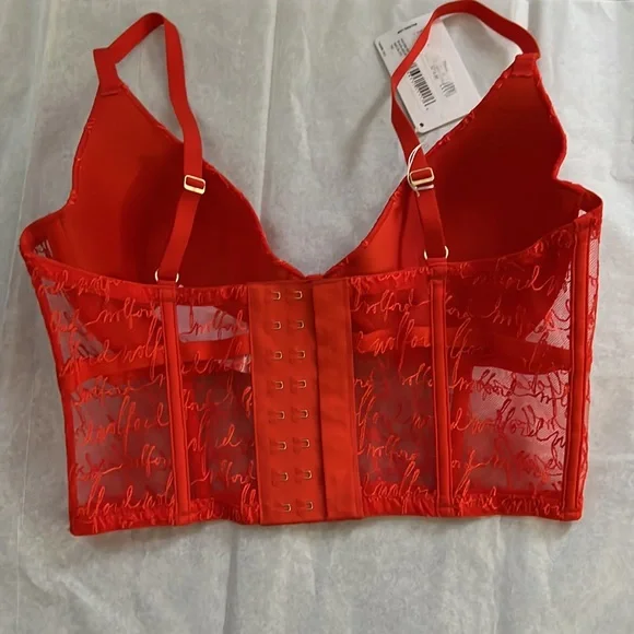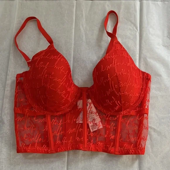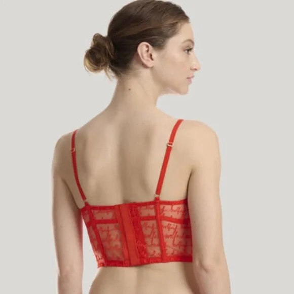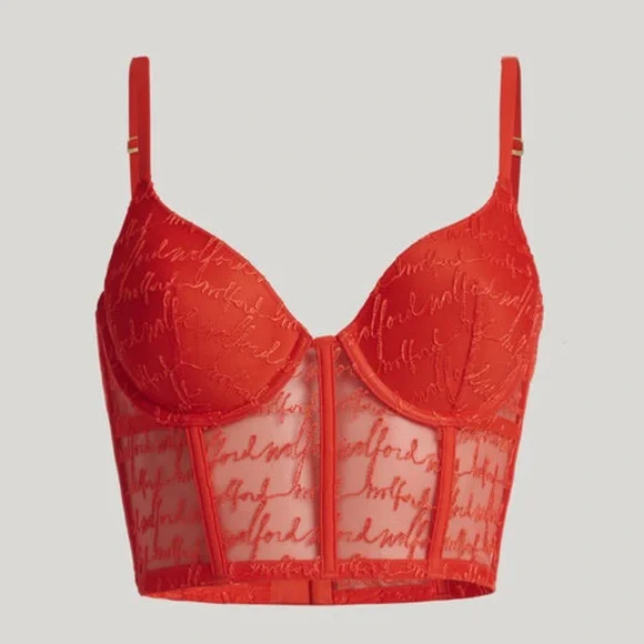 We are obsessed with this long lined bustier. Lightly lined with molded demi pad cups, the adjustable back straps with signature gold rings and slides and hook and eye closure at the center back complete the top. There is serious bone structure following traditional corsetry techniques that makes it supportive and structural. This stunning piece can be worn under a blazer or on its own.Model is 175 cm (5'9") tall and wears size 75B (34B).Wolford Scripted Logo Embroidery on Sheer Tulle / Lightly Lined with Molded Demi Pad Cups / Adjustable Straps / Bone Structure - Corsetry Techniques for Support + Structure / Signature Gold Hardware / Bonded Finishes